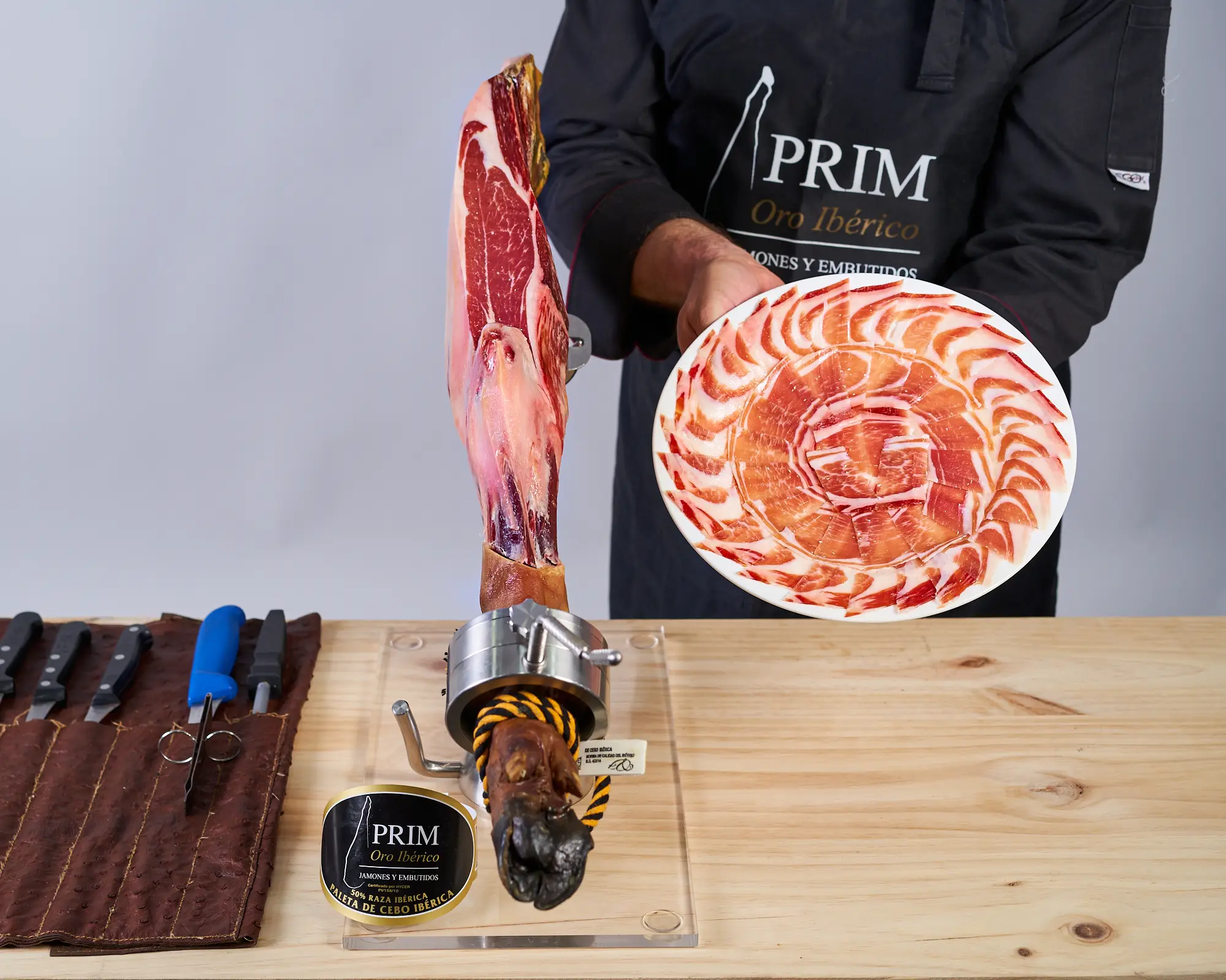 La Paleta Prim de Cebo Ibérica procede de cerdos ibéricos propios criados y mimados desde el primer día en nuestras granjas y alimentados con una mezcla de la mejor materia prima local. Una fórmula única y familiar estudiada al detalle durante años es lo que junto con un largo proceso de curación natural hace que nuestra Paleta PRIM de Cebo Ibérica sea un producto tan valorado.